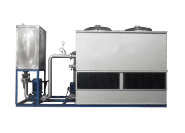 Uma torre de resfriamento fechada (também chamada de resfriador de ar evaporativo, torre de resfriamento selada ou torre de resfriamento fechada) abriga um trocador de calor tubular dentro da torre.O efeito de arrefecimento é alcançado através da troca de calor entre o ar em circulação, pulverizar água fora dos tubos e água circulante dentro dos tubos.
